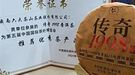 傳奇1998榮獲第五屆中國國際茶葉博覽會(huì)“推薦優(yōu)秀茶產(chǎn)品”!